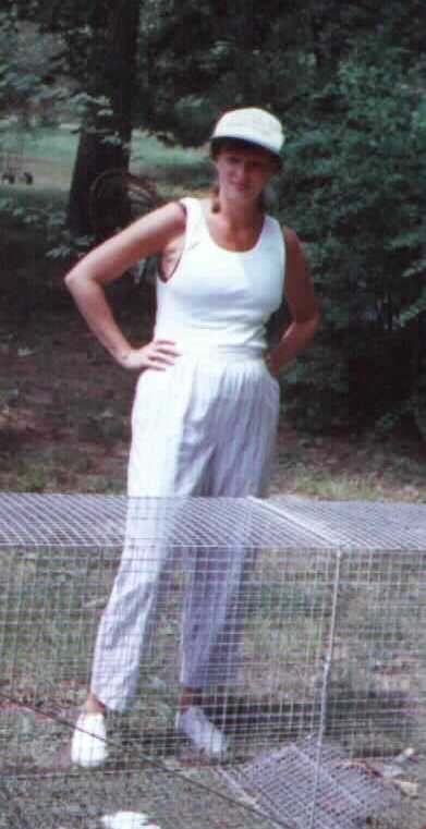 She said, "Early one morning, I surprised them dogs as they attacked my chickens. There were about seven dogs or so out thar scratchin' clawin' and chasin' my chickens, so I aimed my gun at a small solid white dog that was closest to me. I missed the first shot since my hands were shakin' so bad and my dayyum gun jammed on the second shot. The dogs -- particularly the solid white one and a white one with dark speckled ears -- turned on me snapping, snarling, and growling. I was so scared. I started screaming and waving the gun in the air and thank God, the dogs ran off into the woods."