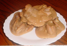Add vanilla; beat until semi-cool and it thickens and loses its gloss (this is the tricky part; you almost have to be psychic or psychotic or something to know when to stop stirring). If mixture seizes up, add hot water and continue stirring. Add pecans and drop by tablespoons onto waxed paper. Cool and store in an airtight container in the fridge.