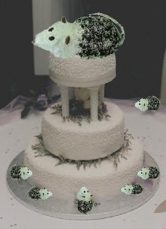 Dear Patricia, Dizzy Dee said, "I can get Hostess cupcakes by the pound at the Flower's Bread-outlet Shoppe. I stack these little guys on a nice cake tray and when I have them the way I want them, I nuke them for a few seconds and let the chocolate-top melt enough to stick them all together. The little wedding couple figurines that top a cake can be purchased new at Wal-mart or 'pre-owned' at the Salvation Army thrift store. No one will be the wiser that your wedding cake was not professionally made. We'll just keep it a secret between us, OK?"